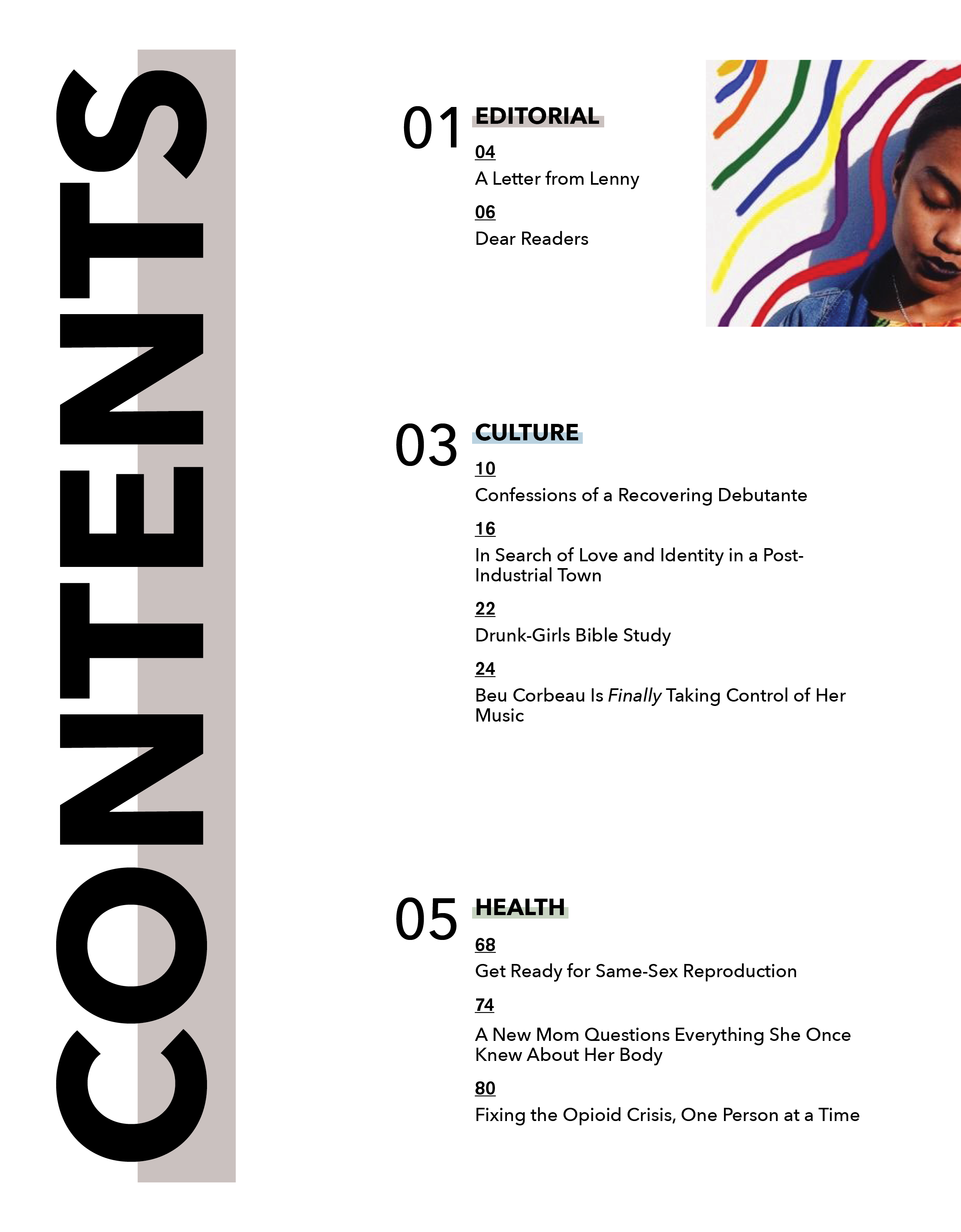 Concept to transform an online magazine, Lenny, into a physical and digital publication. Magazine Cover& Spreads Dimension: A4 View fullsize View fullsize View fullsize View fullsize View fullsize View fullsize View fullsize View fullsize View fullsize View fullsize View fullsize View fullsize Magazine adapted to Snapchat View fullsize View fullsize View fullsize View fullsize